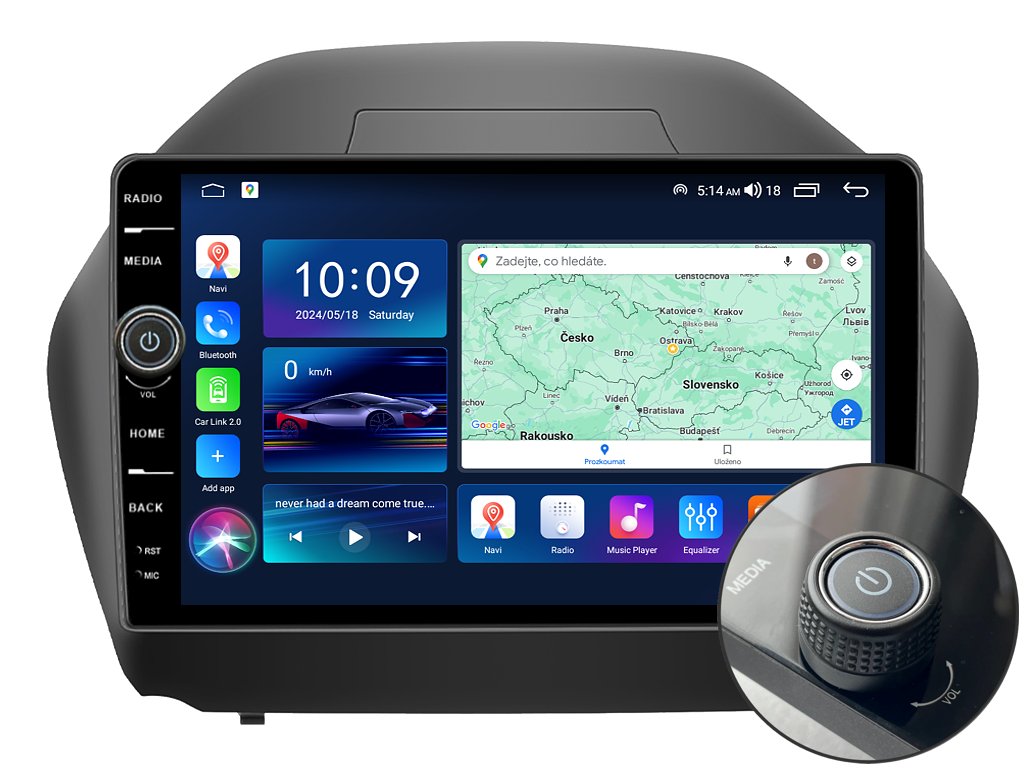 2DIN autorádio Everest EVE28 pro Hyundai ix35 nastavuje nové standardy ve světě multimediálních technologií. Na první pohled zaujme svou 10,1 palcovou QLED obrazovkou s neuvěřitelným rozlišením 1280 x 800. Lze na ní sledovat video i prohlížet fotografie s podporou Android aplikacemi. O špičkový výkon a plynulý běh aplikací se stará stabilní software s 8-jádrovým procesorem ve spolupráci se 6 GB RAM. Náročný posluchač jistě ocení funkci DSP neboli digitální signálový procesor, který násobně zvyšuje kvalitu reprodukce. Za pomocí 4G modulu se z Vašeho autorádia stane smartphone, ze kterého můžete hravě odesílat SMS zprávy, využívat online GPS navigaci s aktuální dopravní situací či využívat další cenné funkce. Váš mobilní telefon již zůstane navždy v kapse díky bezdrátové funkci CarPlay a Android Auto. Díky operačnímu systému Android 14 budete mít ve svém automobilu kompletní multimediální centrum přeplněné funkcemi a aplikacemi. Pohled z parkovací kamery Vám umožní bezpečné a ničím nerušené couvání. Autorádio nabízí možnost výběru z různých jazyků, které obsahují přeloženou základní část systému do českého jazyka.