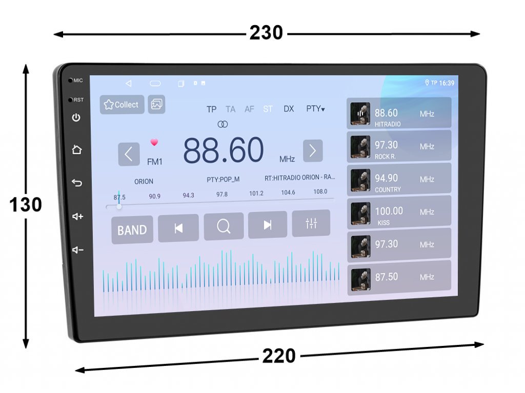 QLED displej 2DIN autorádia je zaměřen na dokonalé ovládání s maximálním přehledem. Obraz rádia je v HD rozlišení s uhlopříčkou o neuvěřitelných 9 palcích. Díky velikosti obrazovky disponuje autorádio větším displejem než většina běžně používaných autorádií. Ovládání autorádia zvládnete hravě pomocí jemného dotyku na displej, který je velmi citlivý i při stisknutí ikony v rukavicích.