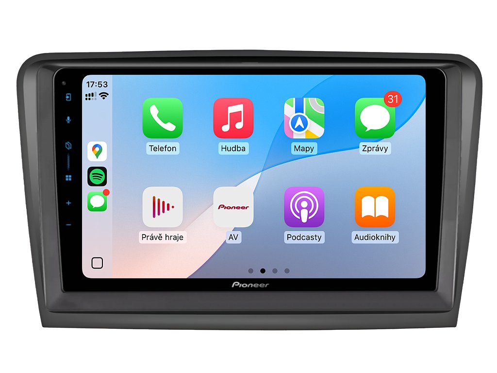 Proměňte každou jízdu automobilem v jedinečný zážitek s autorádiem Pioneer SPH-PF97BT pro Škoda Superb II. Tento moderní multimediální systém se pyšní velkým 9" dotykovým displejem s intuitivním ovládáním, které vám poskytne snadný přístup ke všem funkcím. Apple CarPlay a Android Auto zajišťují bezproblémové propojení s vaším chytrým telefonem, takže můžete pohodlně používat navigaci, přehrávat hudbu nebo vyřizovat hovory prostřednictvím Bluetooth Handsfree. Díky pokročilému DSP (Digital Signal Processor) ekvalizéru si užijete dokonalý zvukový zážitek, ať už posloucháte oblíbenou hudbu nebo sledujete video. Bezdrátové připojení umožňuje rychlé streamování a přístup k online službám. Pokud často parkujete ve stísněných prostorech, oceníte možnost připojení couvací kamery, která vám usnadní manévrování. Elegantní design a široká kompatibilita dělají z Pioneer ideální volbu pro každého, kdo hledá špičkové autorádio s nejmodernějšími technologiemi.